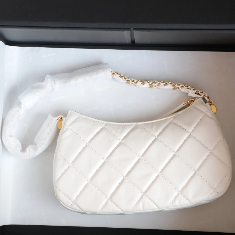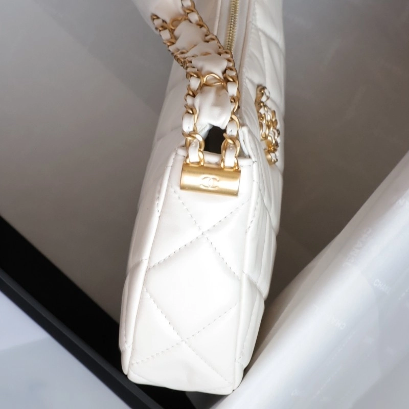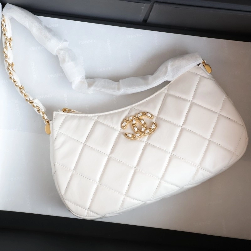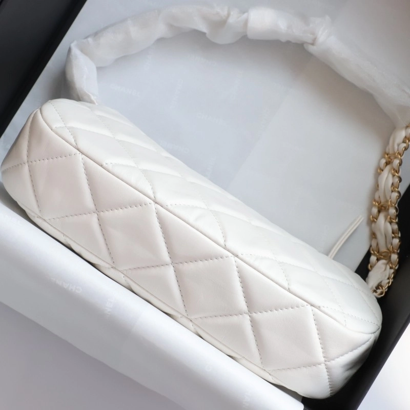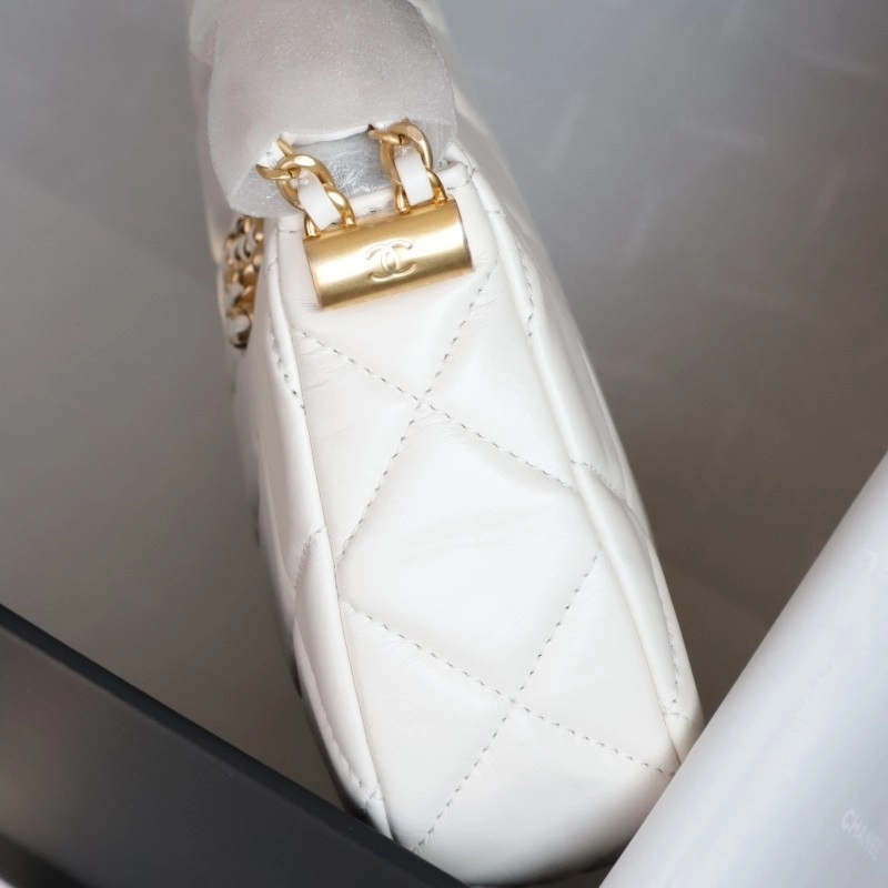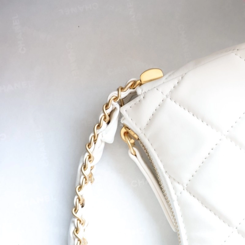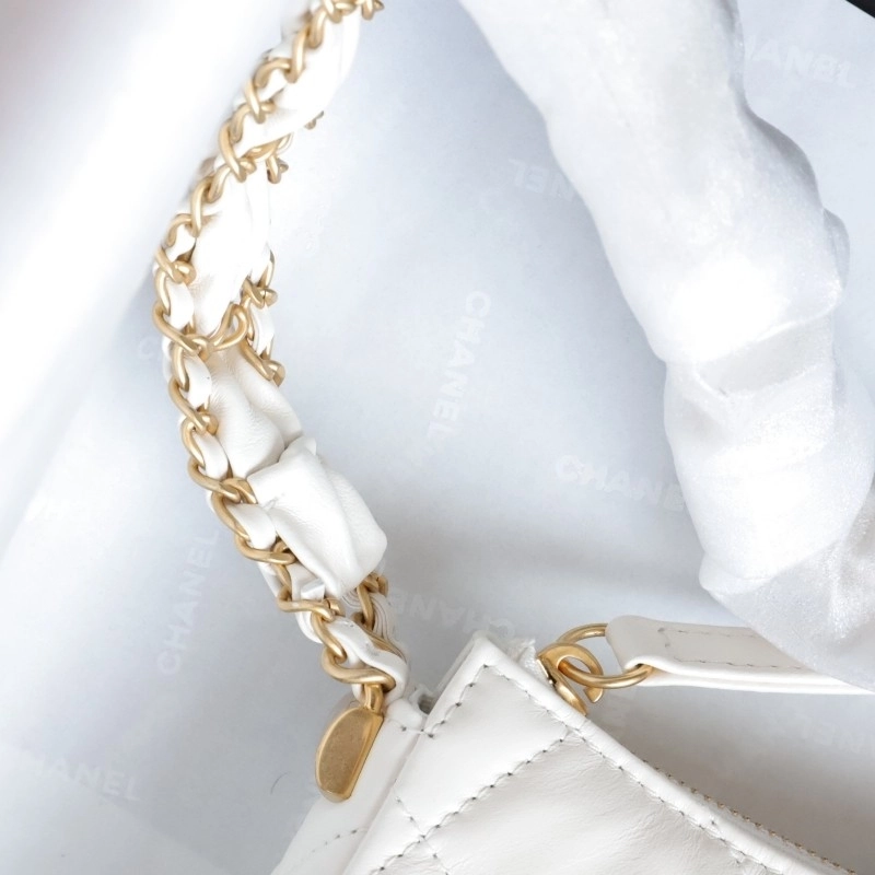 Chanel 19 Hobo Bag White Aged Calfskin Brushed Gold Hardware 23.5cm