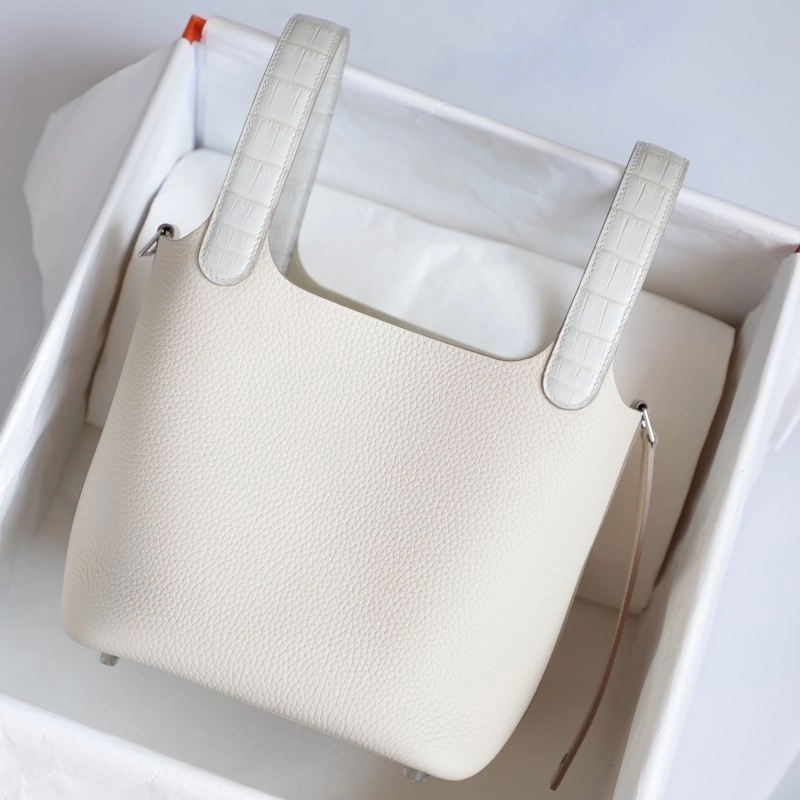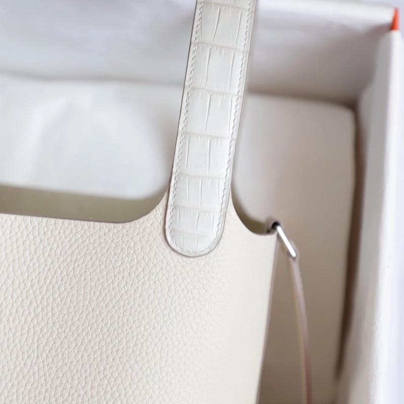 C10 Craie and crocodile handle picotin lock 18cm with phw