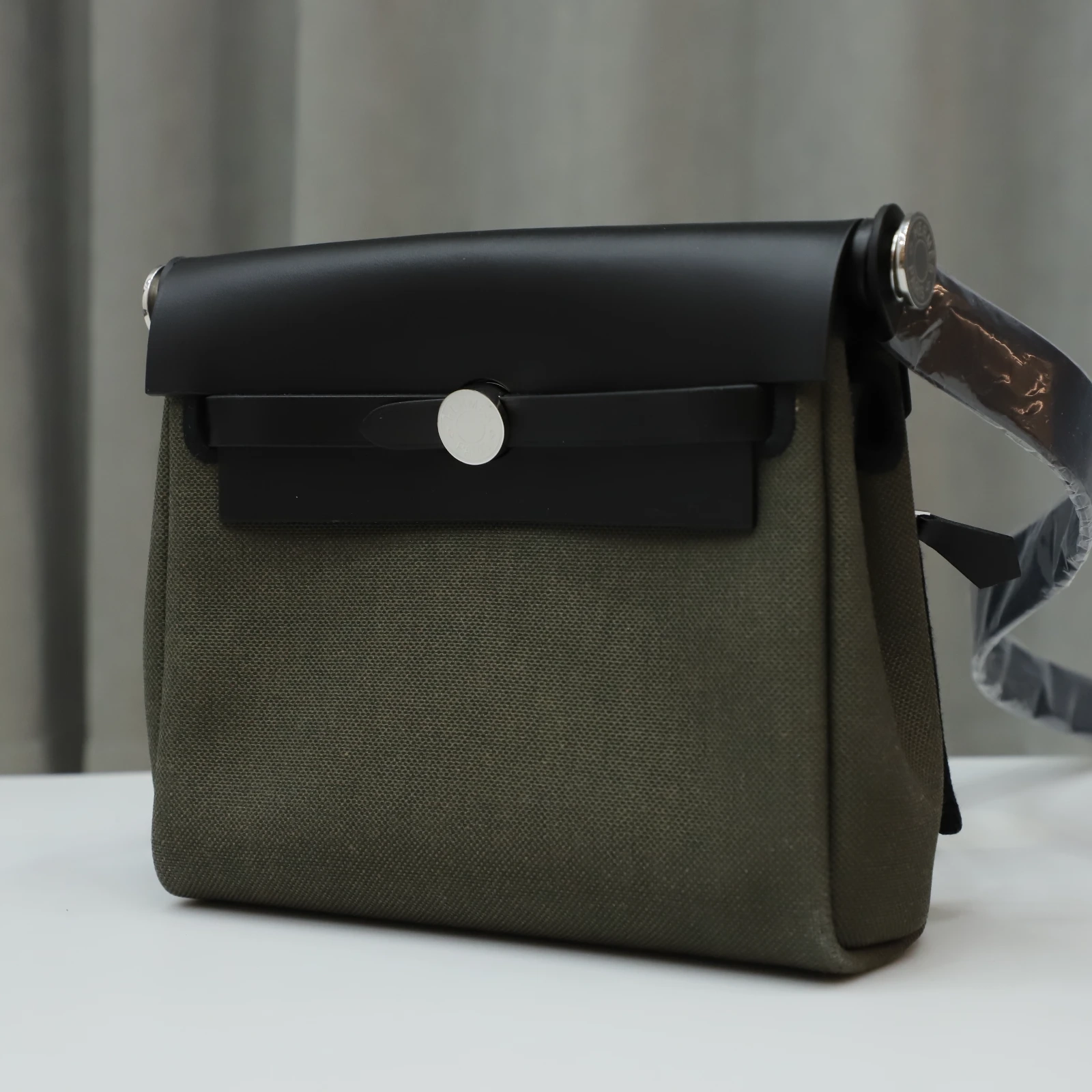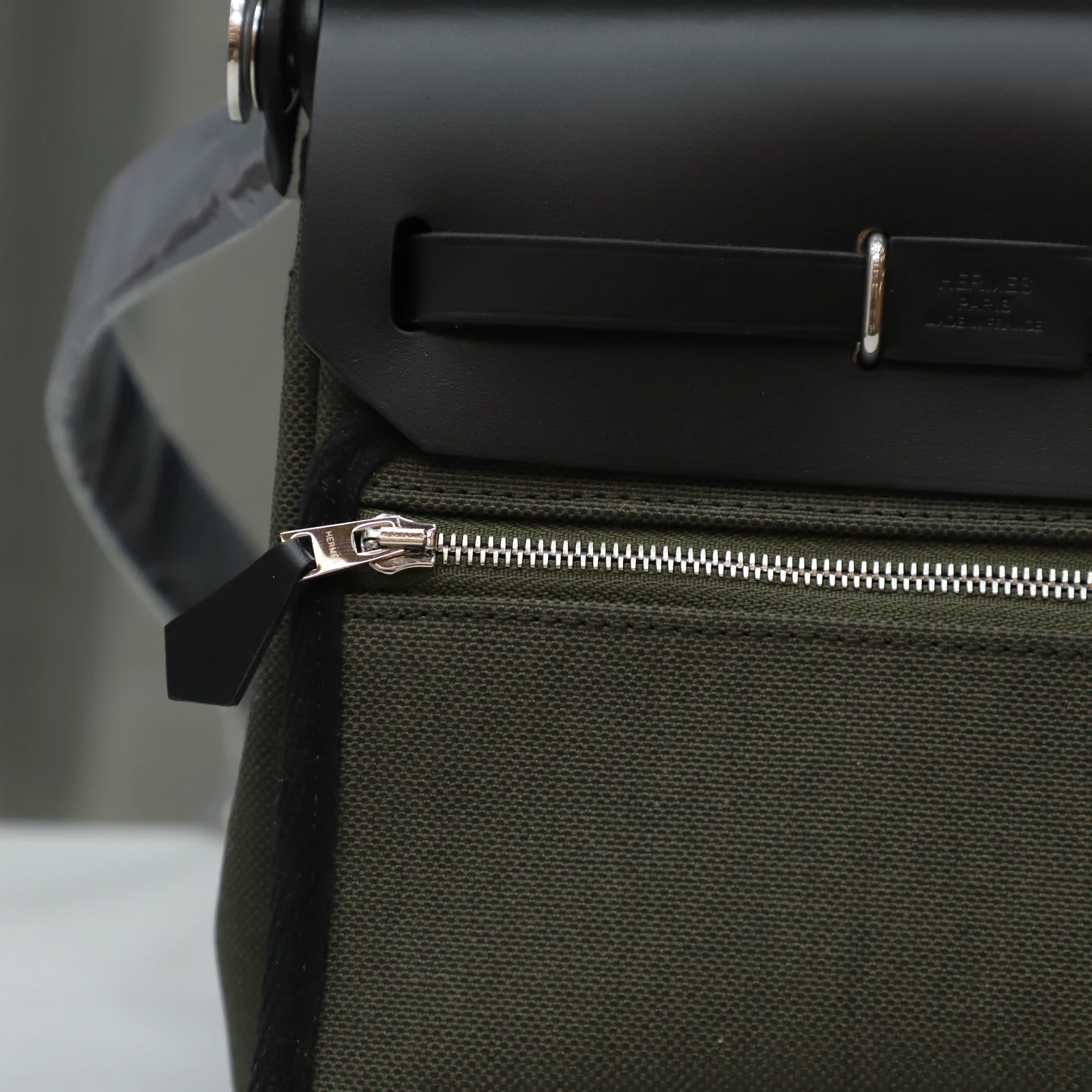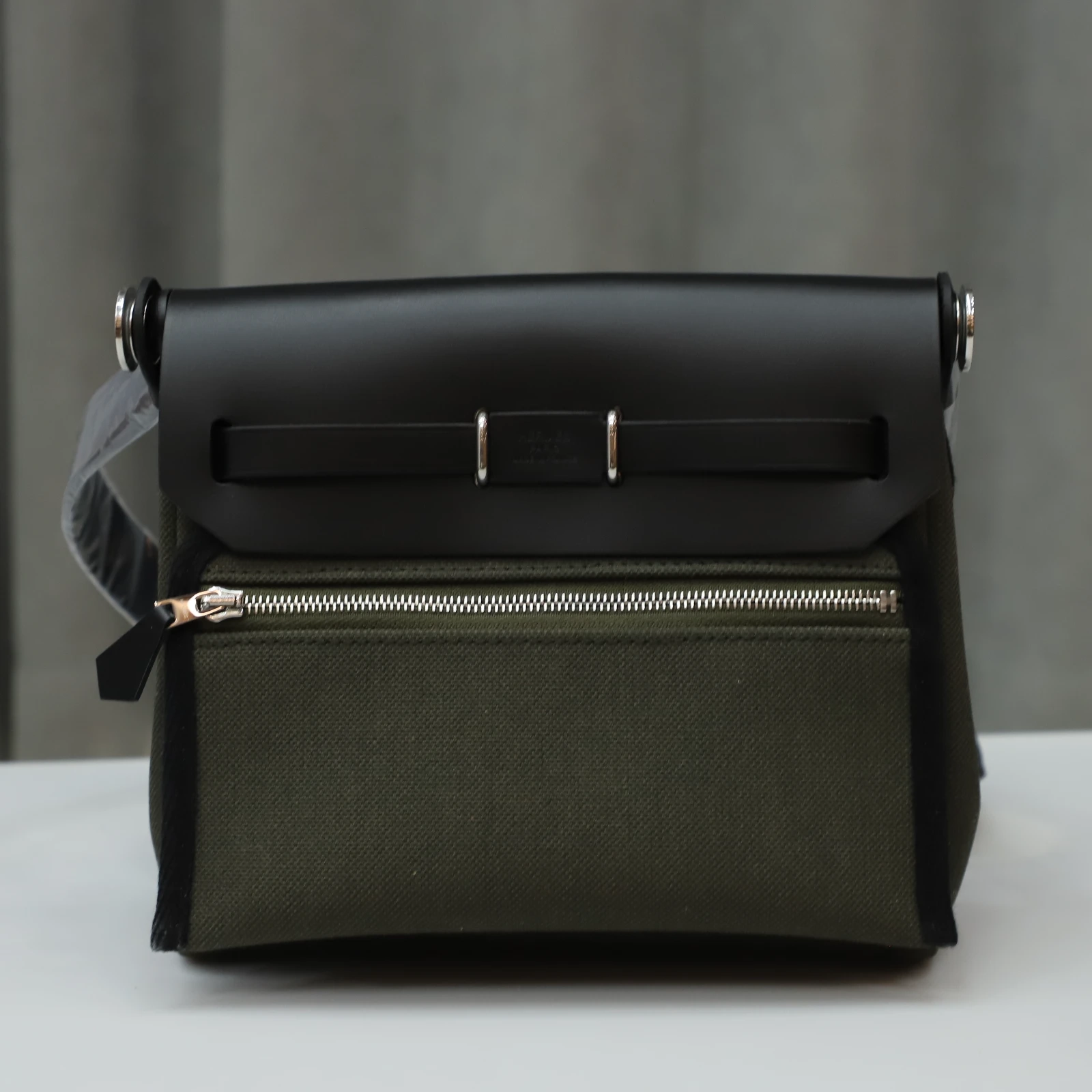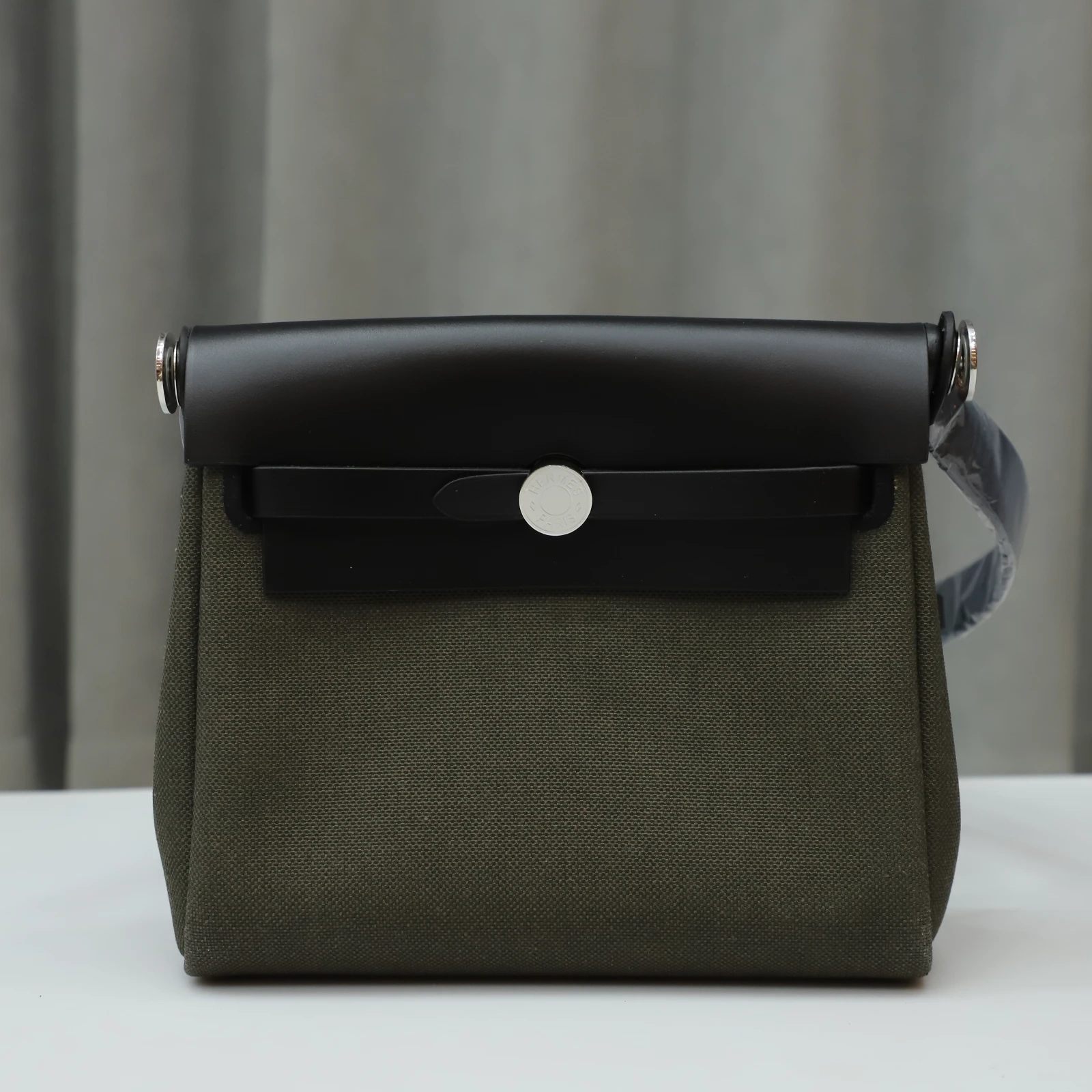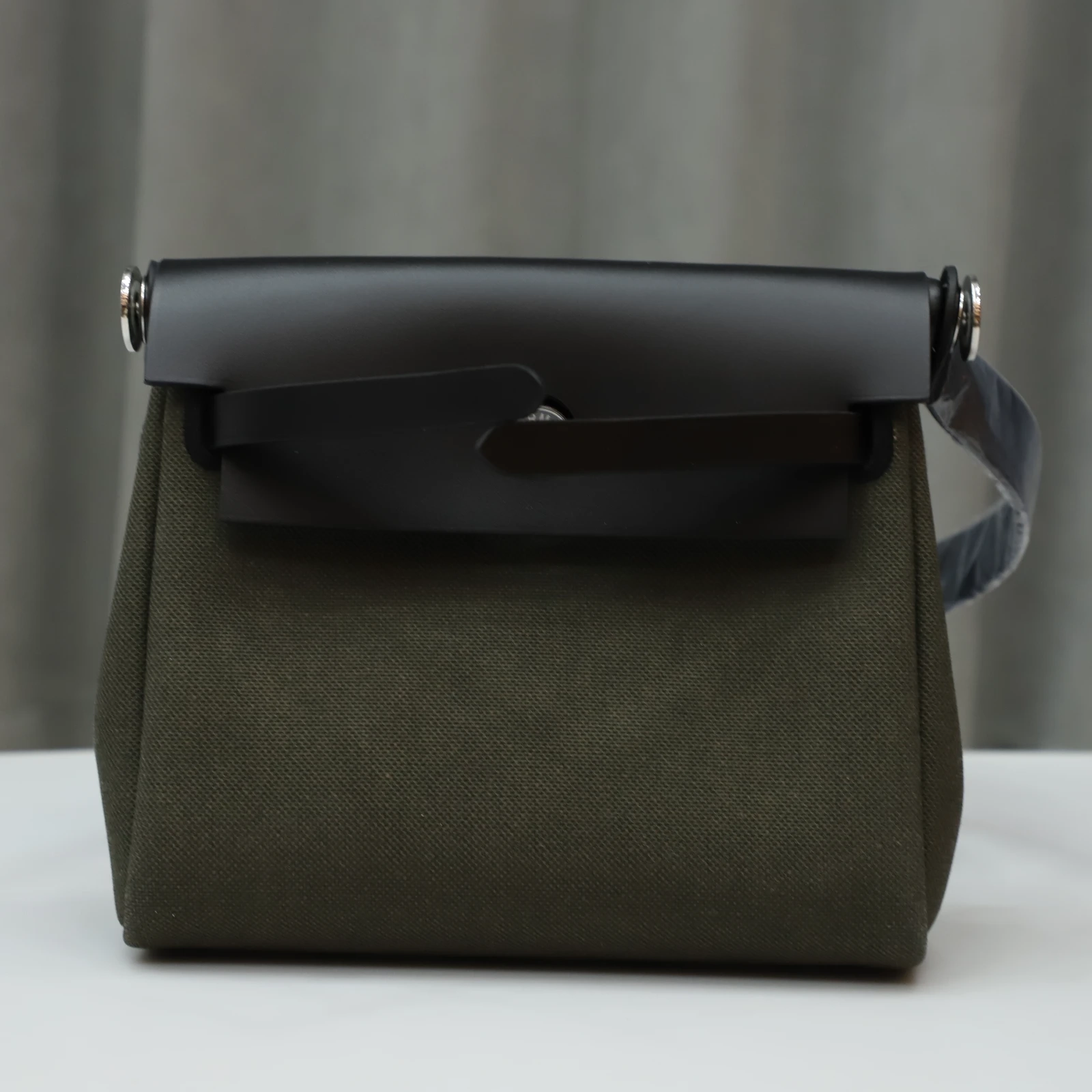 Hermès Herbag Zip Mini 20 Nior (CK89) with Vert Olive Canvas Palladium Hardware