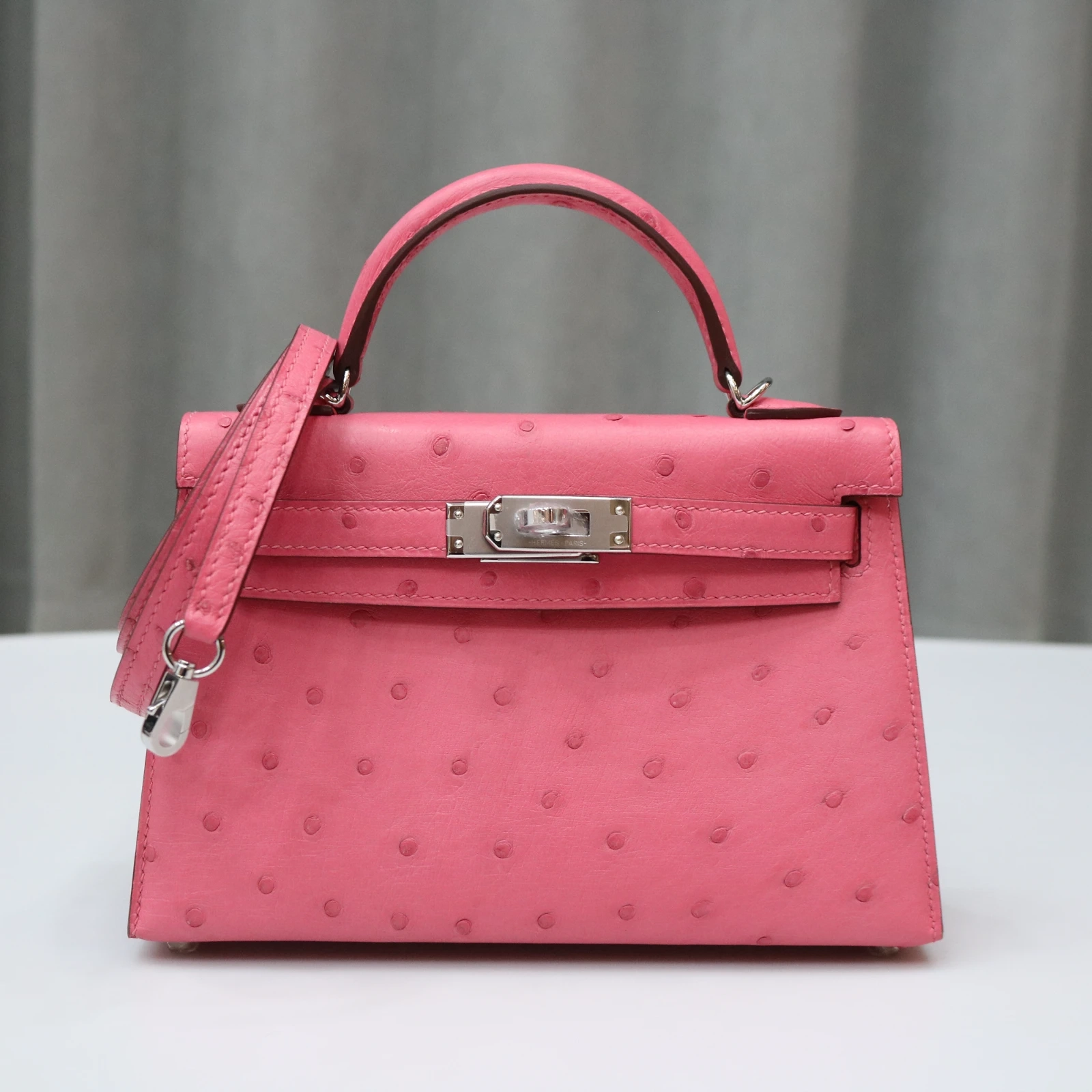 5P Bubblegum Ostrich Kelly Mini II With PHW