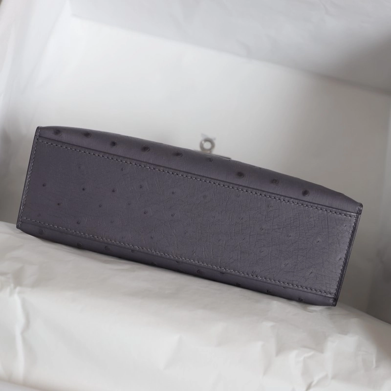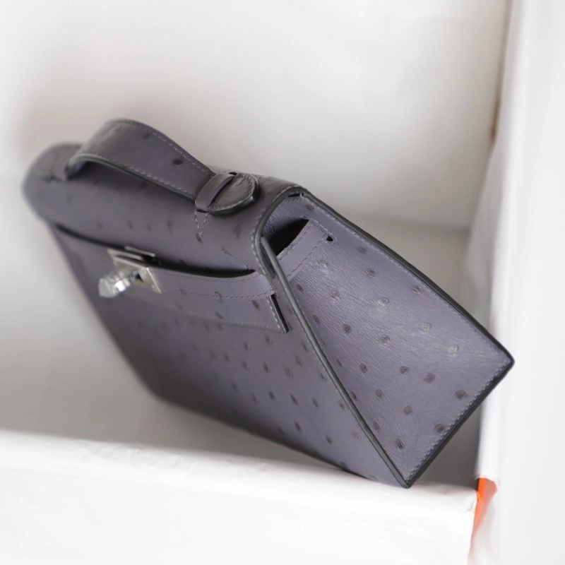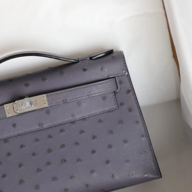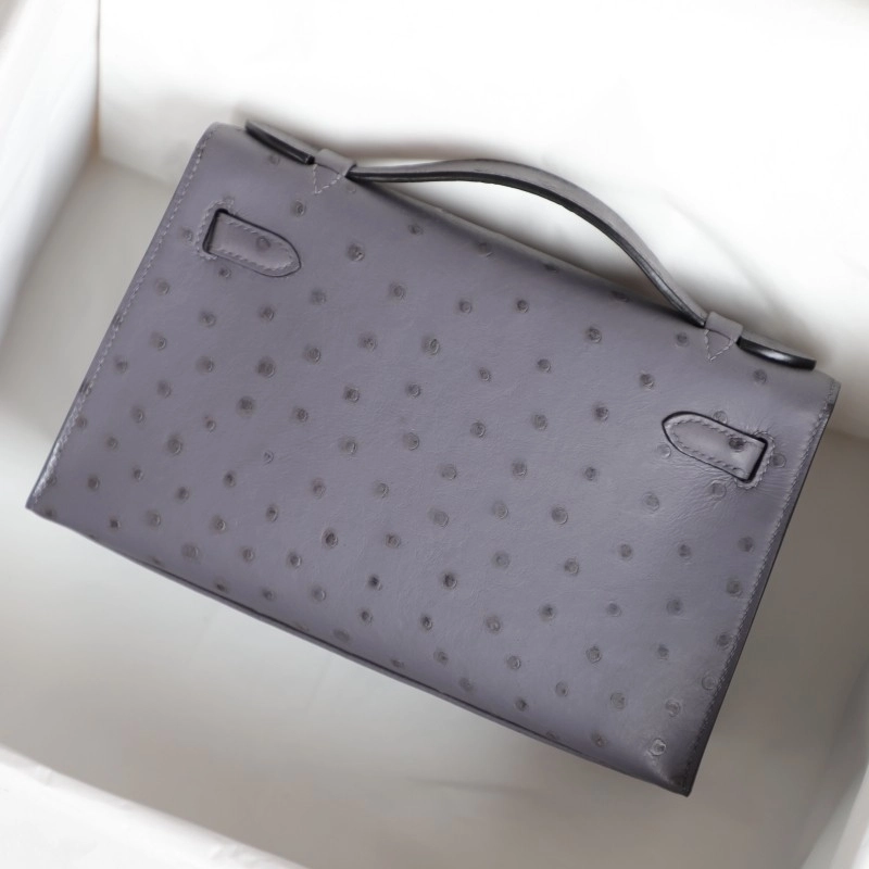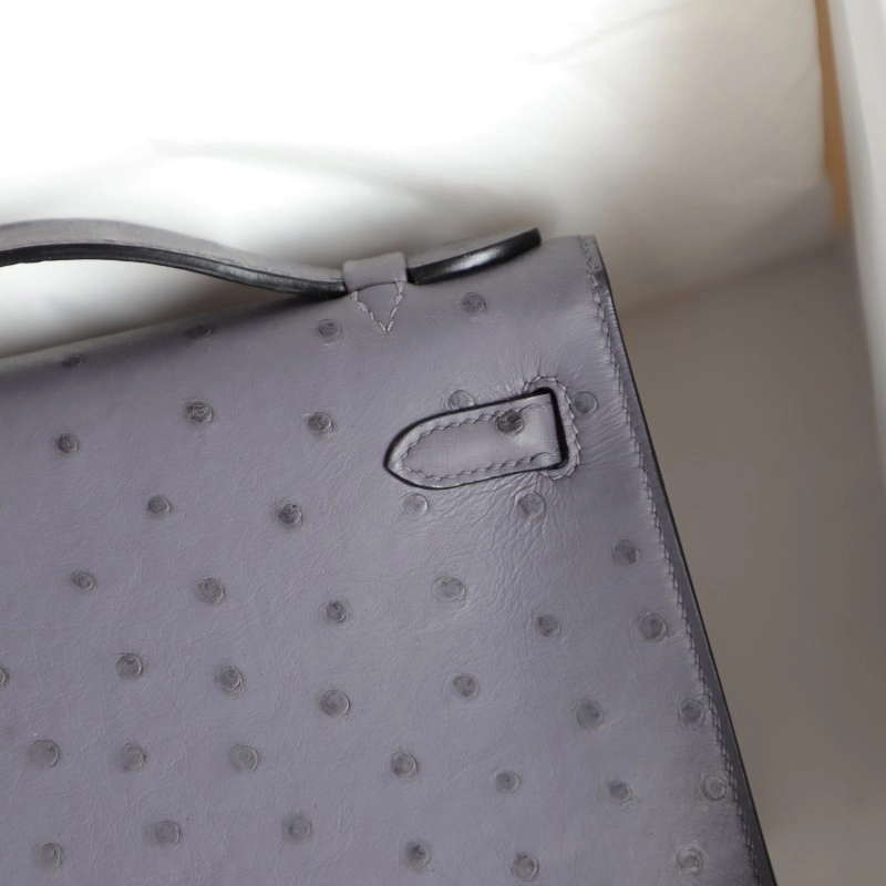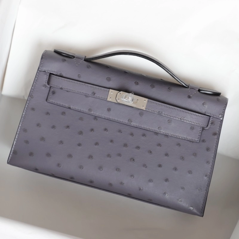 82 AgateGris OSTRICH KELLY POCHETTE WITH PHW
