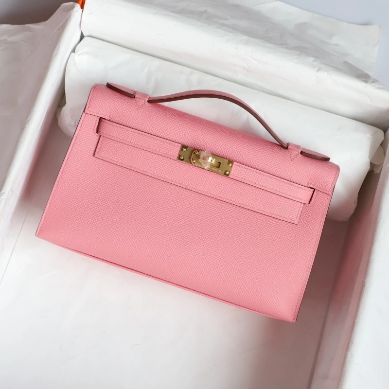 1Q Rose Confetti epsom kelly pochette with ghw