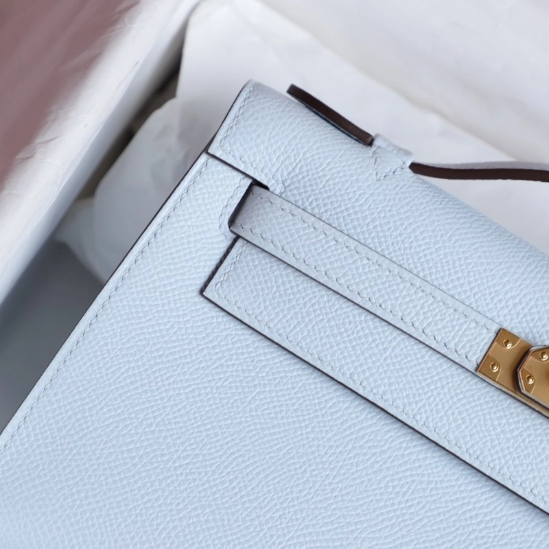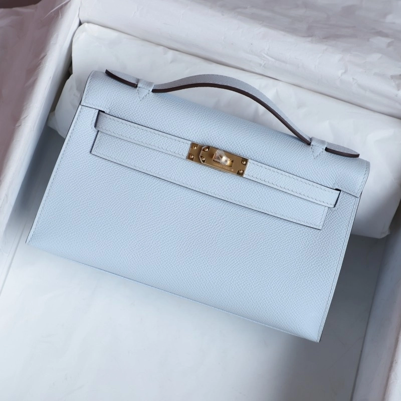 T0 Blue brume epsom kelly pochette with ghw
