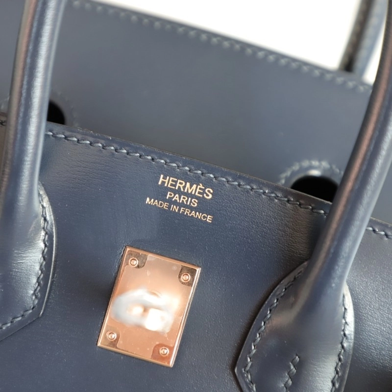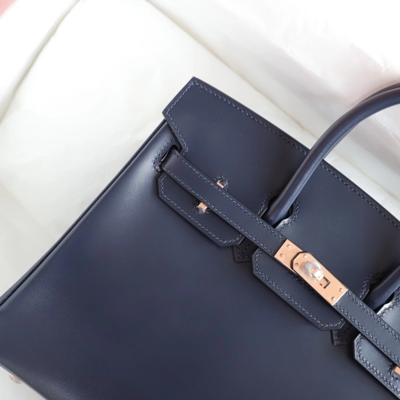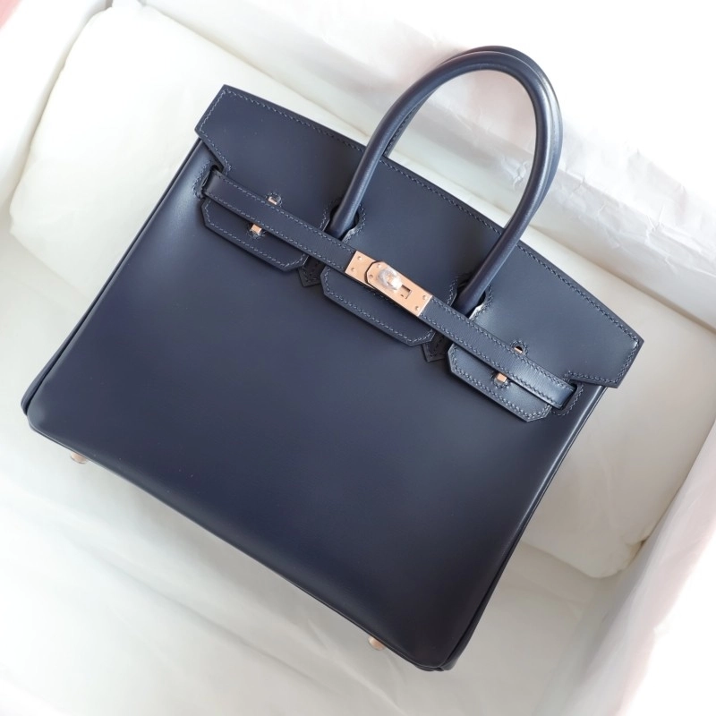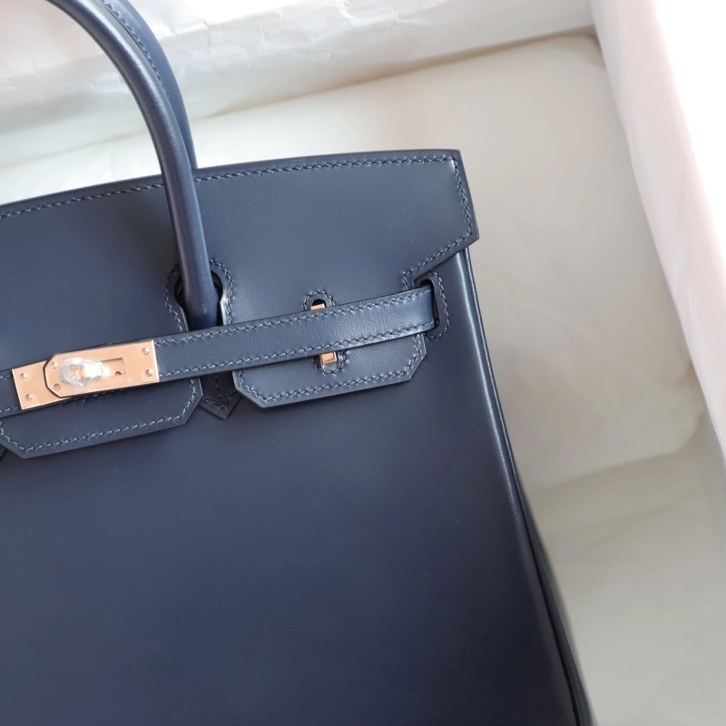 73 Bleu saphir box calf birkin 25 with rose gold hardware